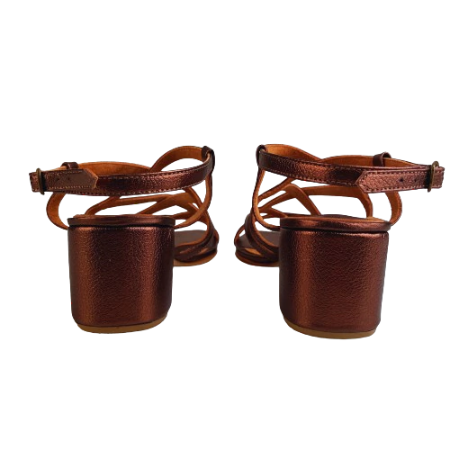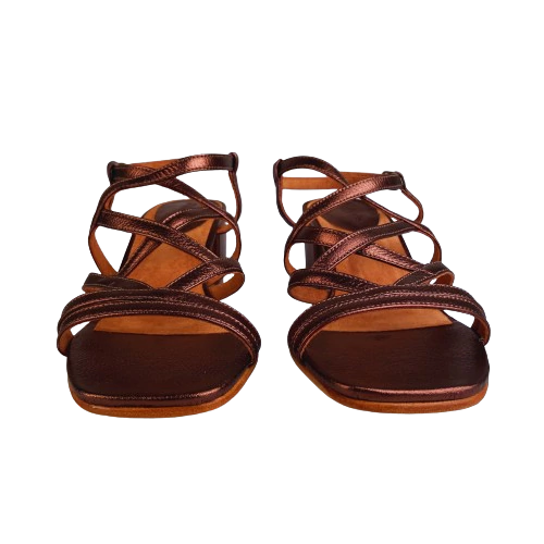 O tom ouro velho metalizado confere um toque glamoroso, tornando esta sandália uma escolha impecável para eventos especiais ou para adicionar um toque de elegância a seu visual cotidiano. Seja o centro das atenções com este calçado exclusivo, que não apenas complementa seu estilo, mas também reflete sua individualidade.